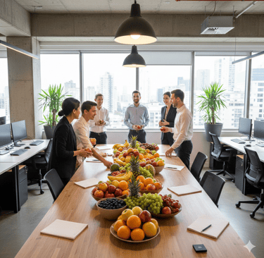 ✓ Porciones individuales: frutas pre-empacadas por persona, perfectas para sedes con múltiples pisos.